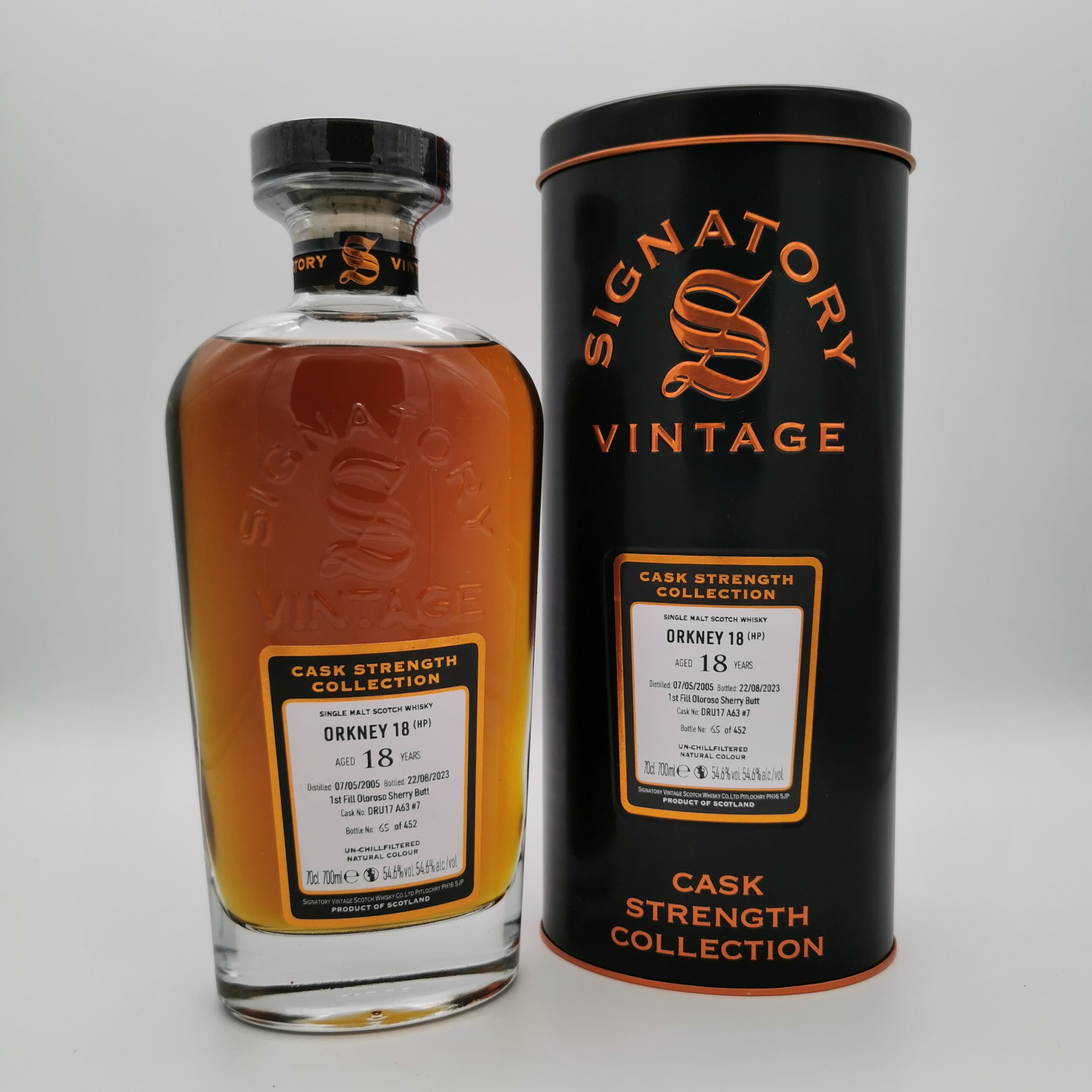 Dieser Orkney 18 Jahre 2005/2023 stammt aus der beliebten Highland Park (HP) Brennerei und wurde vom unabhängigen Abfüller Signatory Vintage in der Cask Strength Collection abgefüllt. Er reifte im 1st Fill Oloroso Sherry Butt #7 zu einem herausragenden Single Malt!