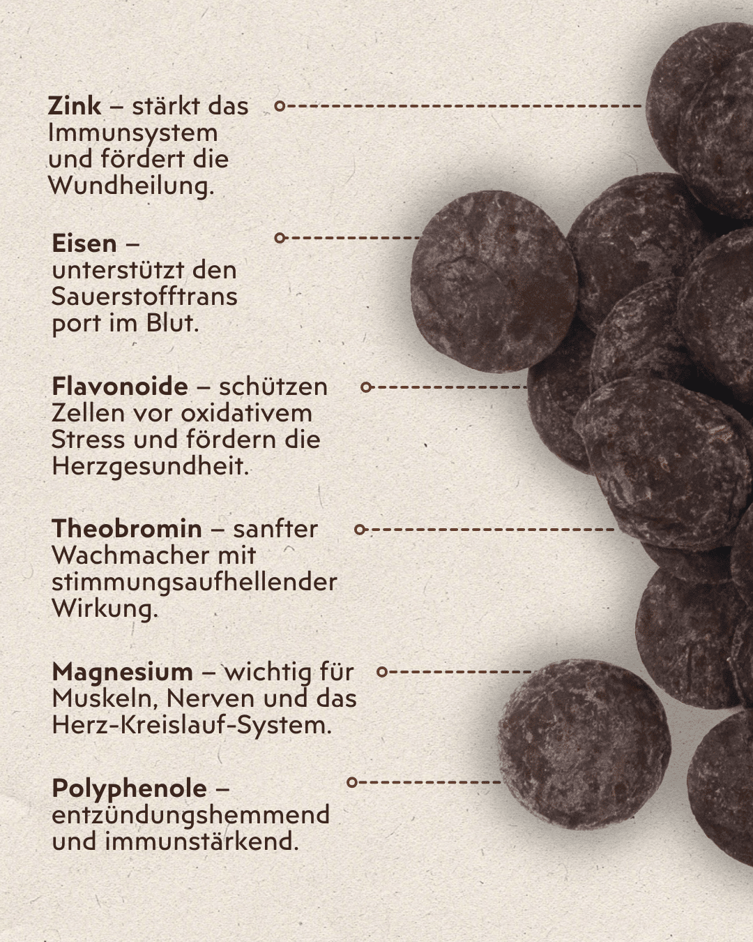 Jede unserer Kakaomassen enthält sämtliche lebenswichtigen Vitalstoffe der Kakaobohne und eignet sich daher nicht nur für Kakaozeremonien, sondern auch als ideale Basis für eine Vielzahl von Heißgetränken. Die Verwendung unseres Arriba Nacional Edelkakaos aus Ecuador ermöglicht es auch, Ihre eigene DIY-Schokolade zu kreieren, die durch ihren unvergleichlichen Geschmack und ihre Qualität beeindruckt.